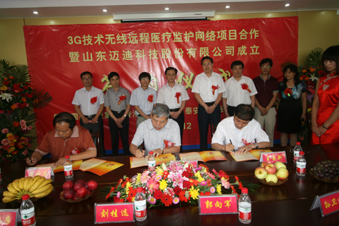 8月12日,3G技術(shù)無線遠程醫(yī)療監(jiān)護網(wǎng)絡項目合作簽約暨山東邁迪科技股份有限公司成立儀式在高新區(qū)舉行。