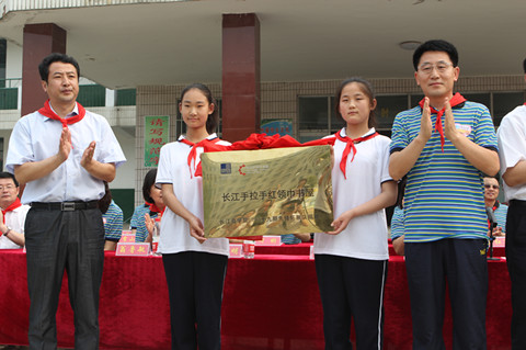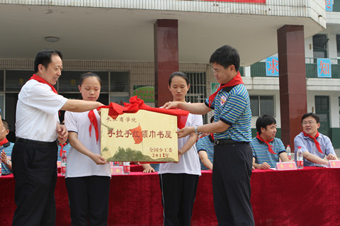 孔祥湖與學(xué)員代表張明倫,姚來新與學(xué)員代表劉貴明分別為“全國(guó)少工委手拉手紅領(lǐng)巾書屋”、“長(zhǎng)江商學(xué)院手拉手紅領(lǐng)書屋”揭牌。