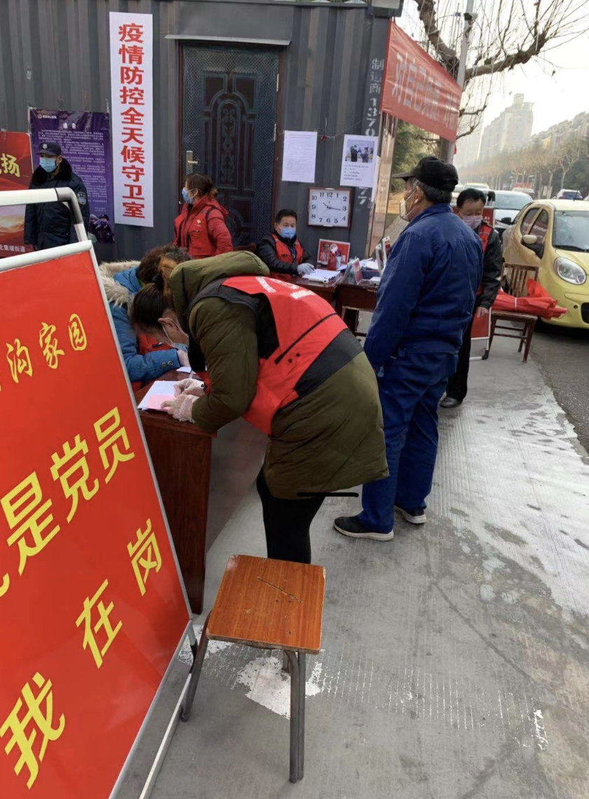 在前線,泰控黨員協(xié)助社區(qū)工作人員共同做好出入小區(qū)人員登記、體溫測量、群眾勸導(dǎo)、疫情防